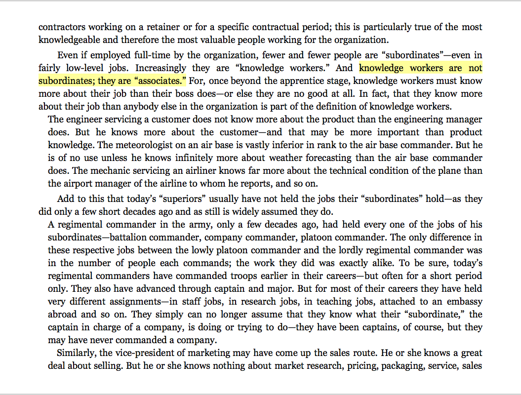“Knowledge workers are not subordinates; they are ‘associates.’ ”