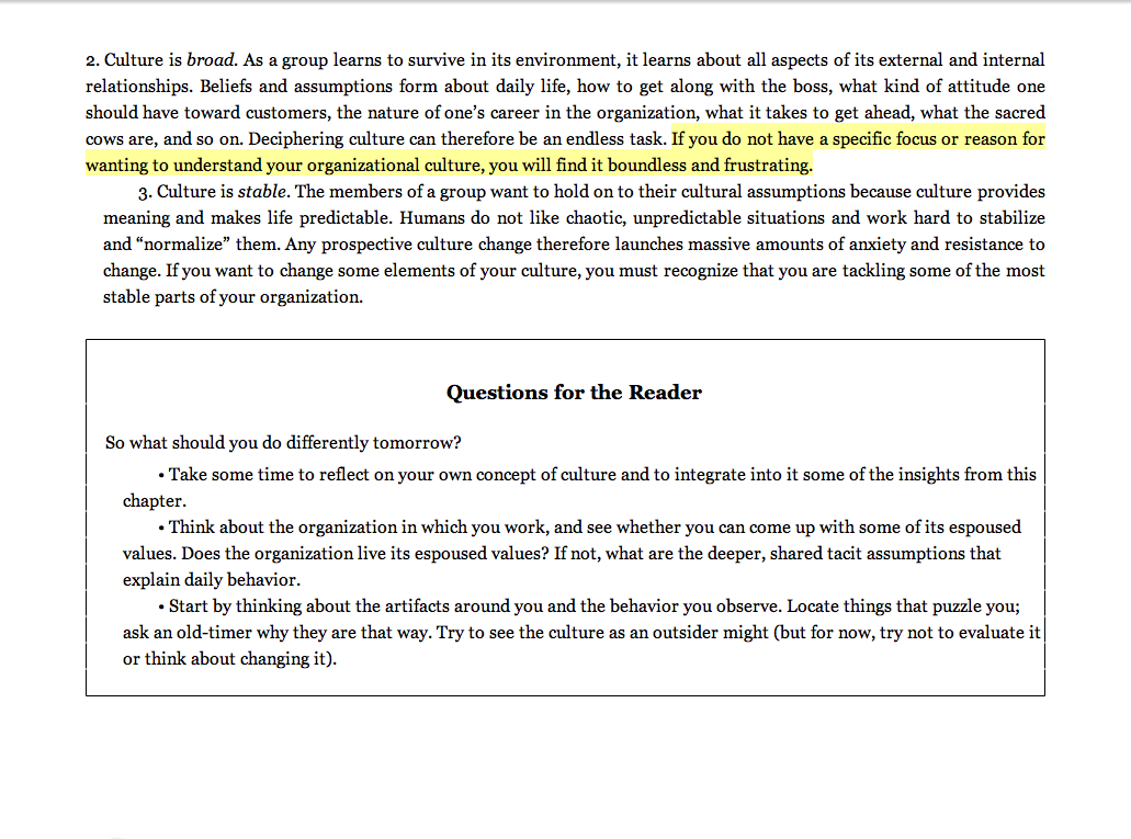 “If you do not have a specific focus or reason for wanting to understand your organizational culture, you will find it boundless and frustrating.”