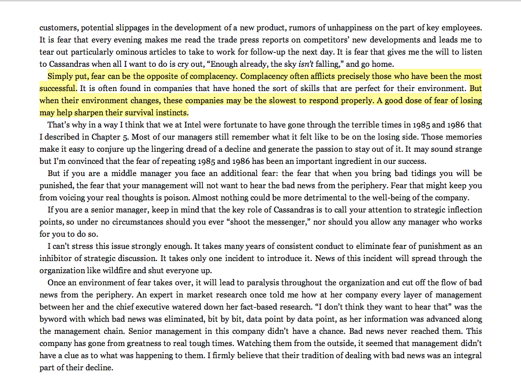 “Fear can be the opposite of complacency. Complacency often afflicts precisely those who have been the most successful. . . .