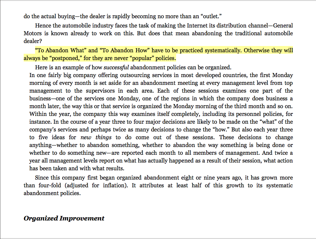 “ ‘To Abandon What’ and ‘To Abandon How’ have to be practiced systematically. Otherwise they will always be ‘postponed,’ for they are never ‘popular’ policies.”