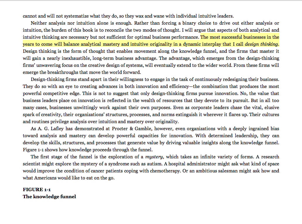 “The most successful businesses in the years to come will balance analytical mastery and intuitive originality in a dynamic interplay that I call design thinking.”