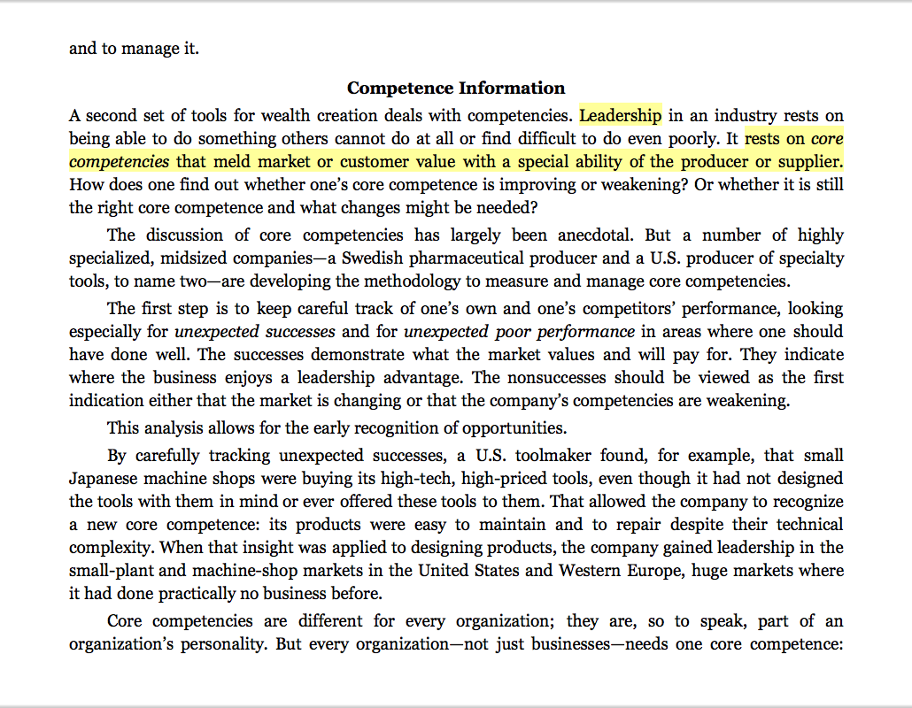 “Leadership. . . rests on core competencies that meld market or customer value with a special ability of the producer or supplier.”