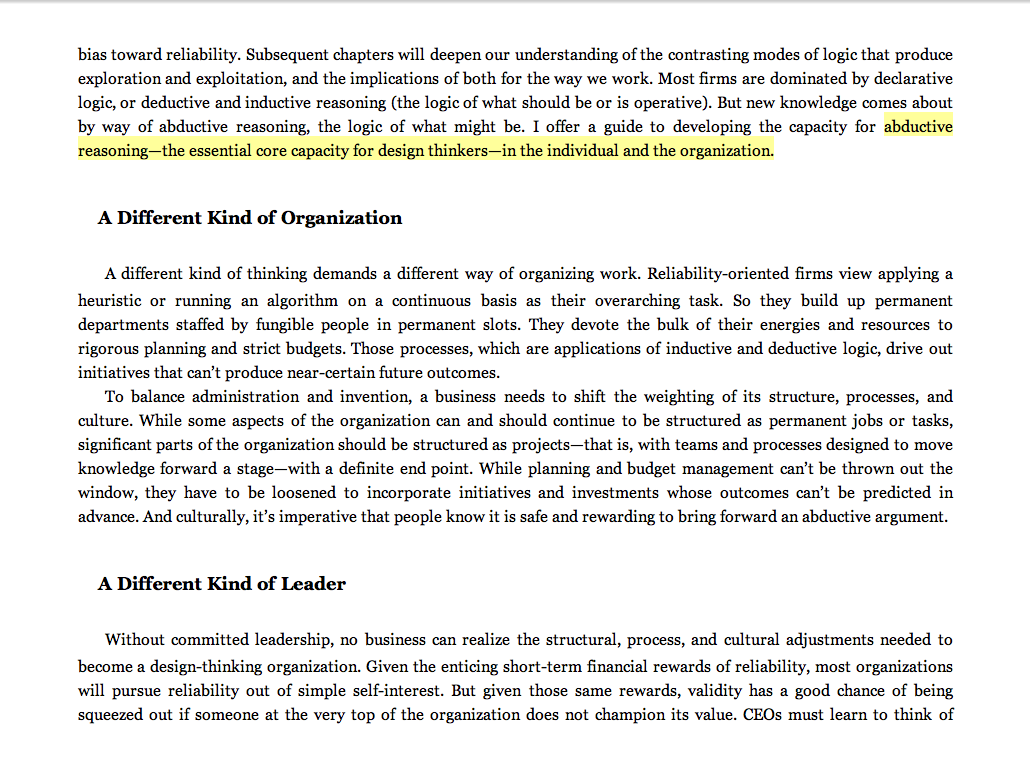 “Abductive reasoning [is] the essential core capacity for design thinkers—in the individual and in the organization.”
