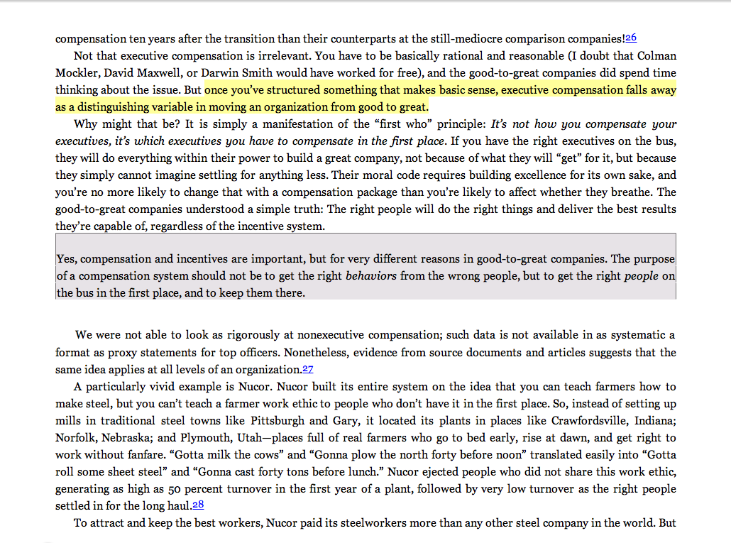 “Once you’ve structured something that makes basic sense, executive compensation falls away as a distinguishing variable in moving an organization from good to great.”