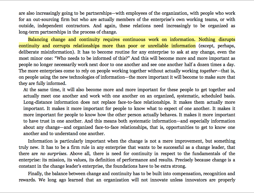 “Balancing change and continuity requires continuous work on information. Nothing disrupts continuity and corrupts relationships more than poor or unreliable information.”