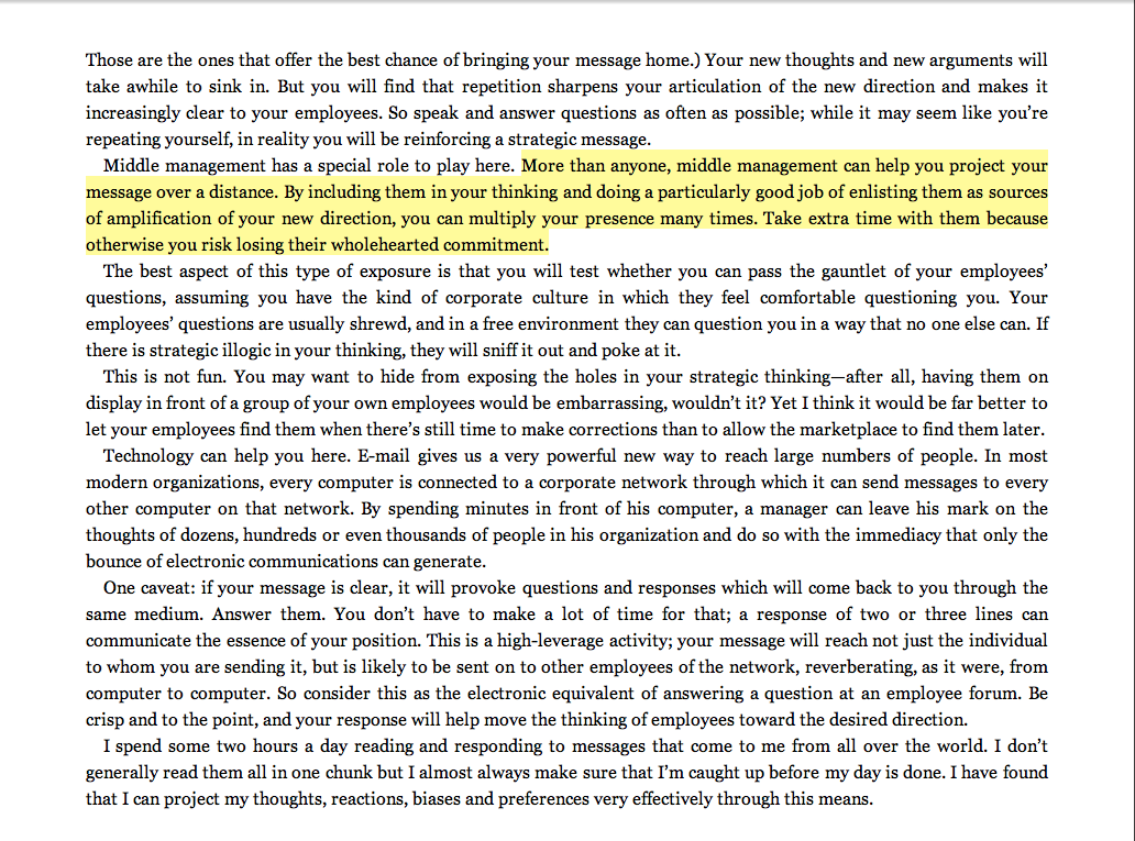 “More than anyone, middle management can help you project your message over a distance.