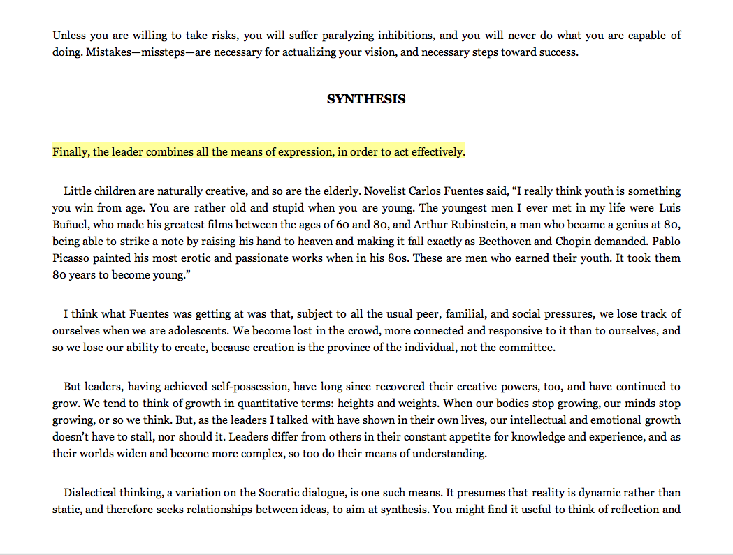 “Finally, the leader combines all the means of expression, in order to act effectively.”