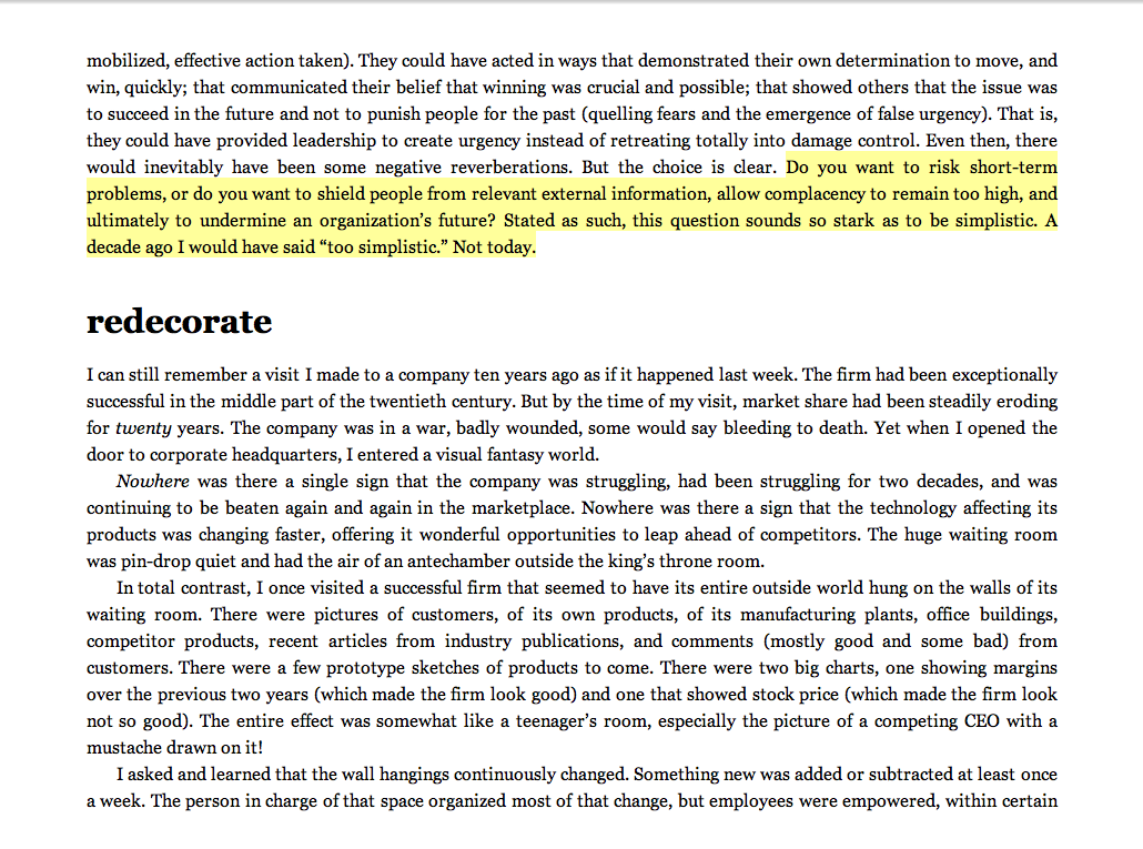 “Do you want to risk short-term problems, or do you want to shield people from relevant external information, allow complacency to remain too high, and ultimately undermine an organization’s future?