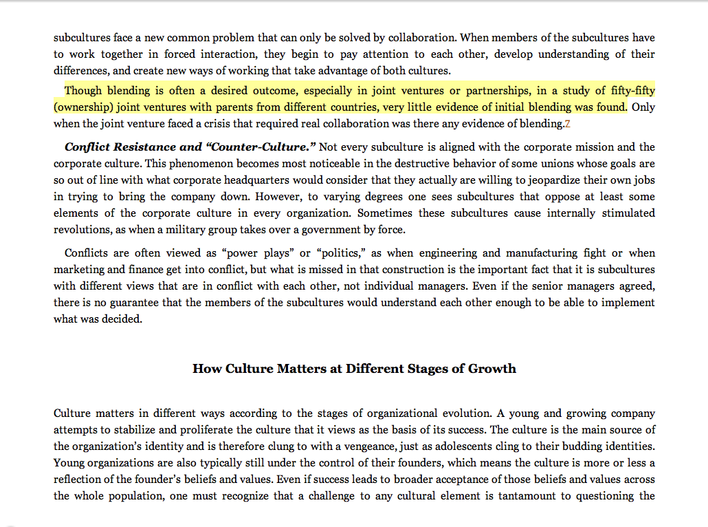 “In a study of fifty-fifty (ownership) joint ventures with parents from different countries, very little evidence of initial blending was found. . . .