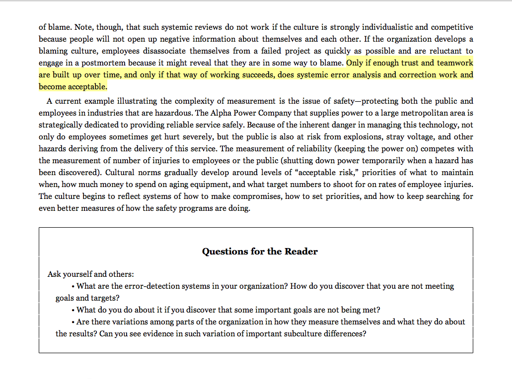 “Only if enough trust and teamwork is built up over time, and only if that way of working succeeds, does systemic error analysis and correction work and become acceptable.”
