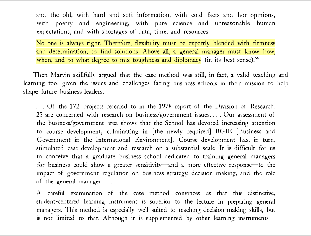 “No one is always right. Therefore, flexibility must be expertly blended with firmness and determination, to find solutions. Above all, a general manager must know how, when, and to what degree to mix toughness and diplomacy.”