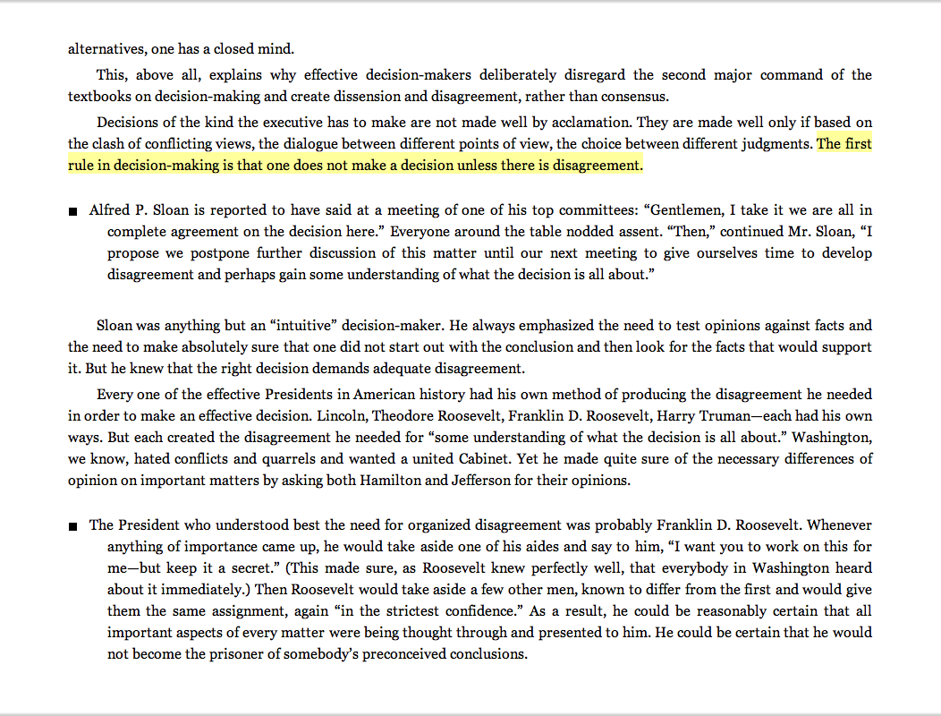 “The first rule in decision-making is that one does not make a decision unless there is disagreement.”