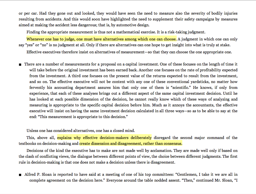 . . .This . . . explains why effective decision-makers deliberately . . . create dissension and disagreement, rather than consensus.”