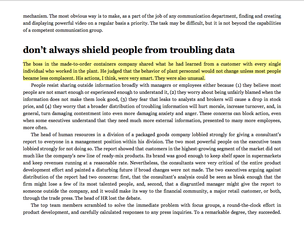“The boss in the made-to-order containers company shared what he had learned from a customer with every single individual who worked in the plant.