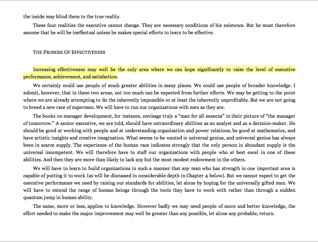 “Increasing effectiveness may well be the only area where we can hope significantly to raise the level of executive performance, achievement, and satisfaction.”