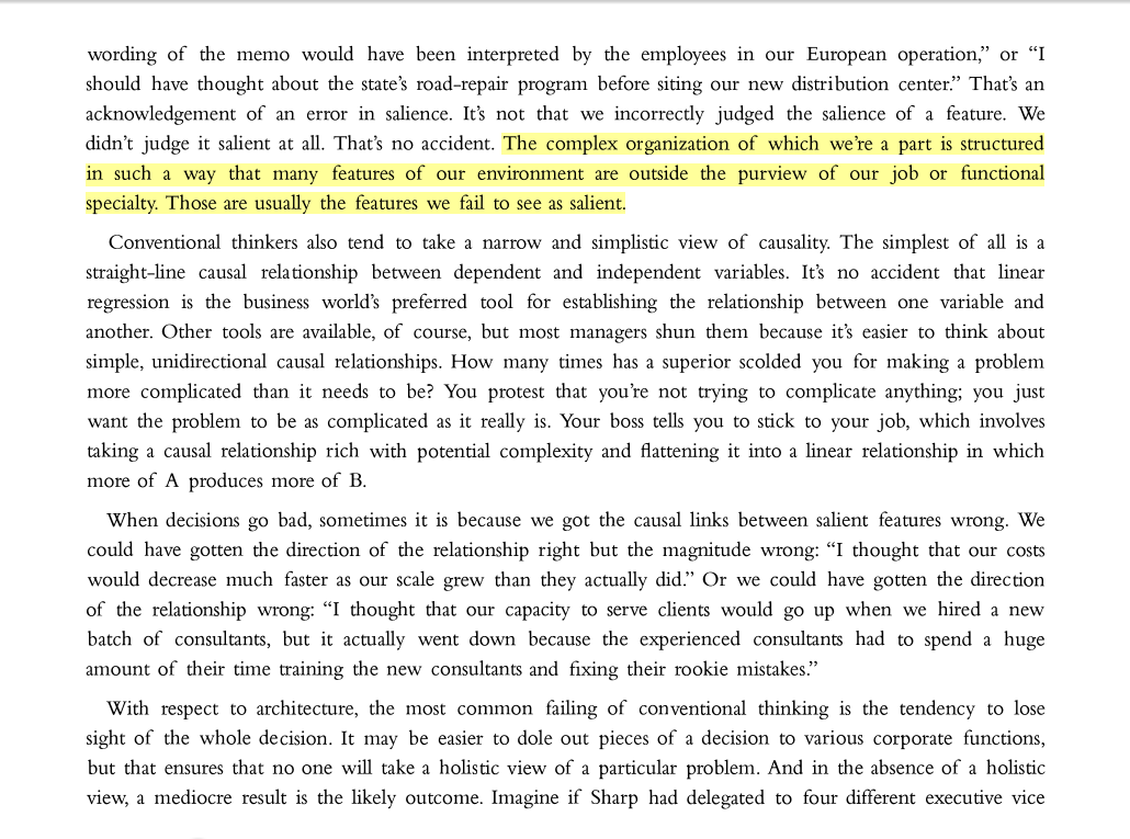 “The complex organization of which we’re a part is structured in such a way that many features of our environment are outside the purview of our job or functional specialty. Those are usually the features we fail to see as salient.”