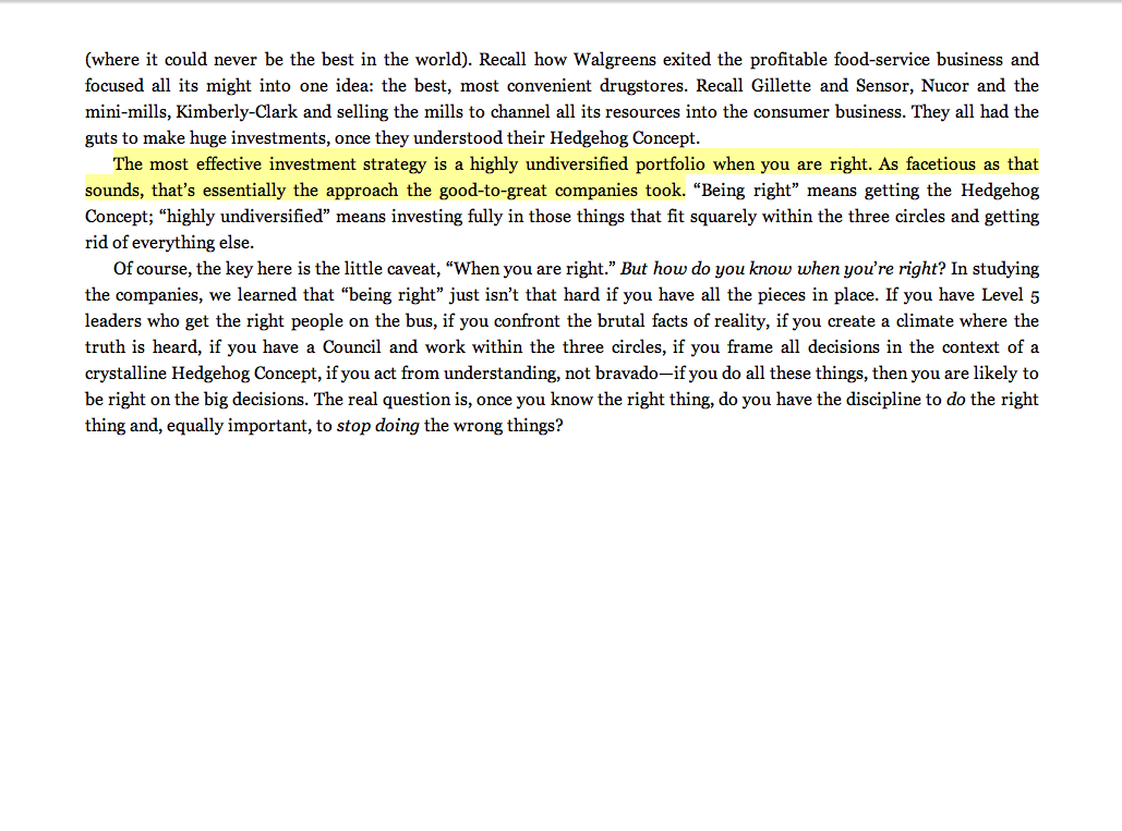 “The most effective investment strategy is a highly undiversified portfolio when you are right. As facetious as that sounds, that’s essentially the approach the good-to-great companies took.”