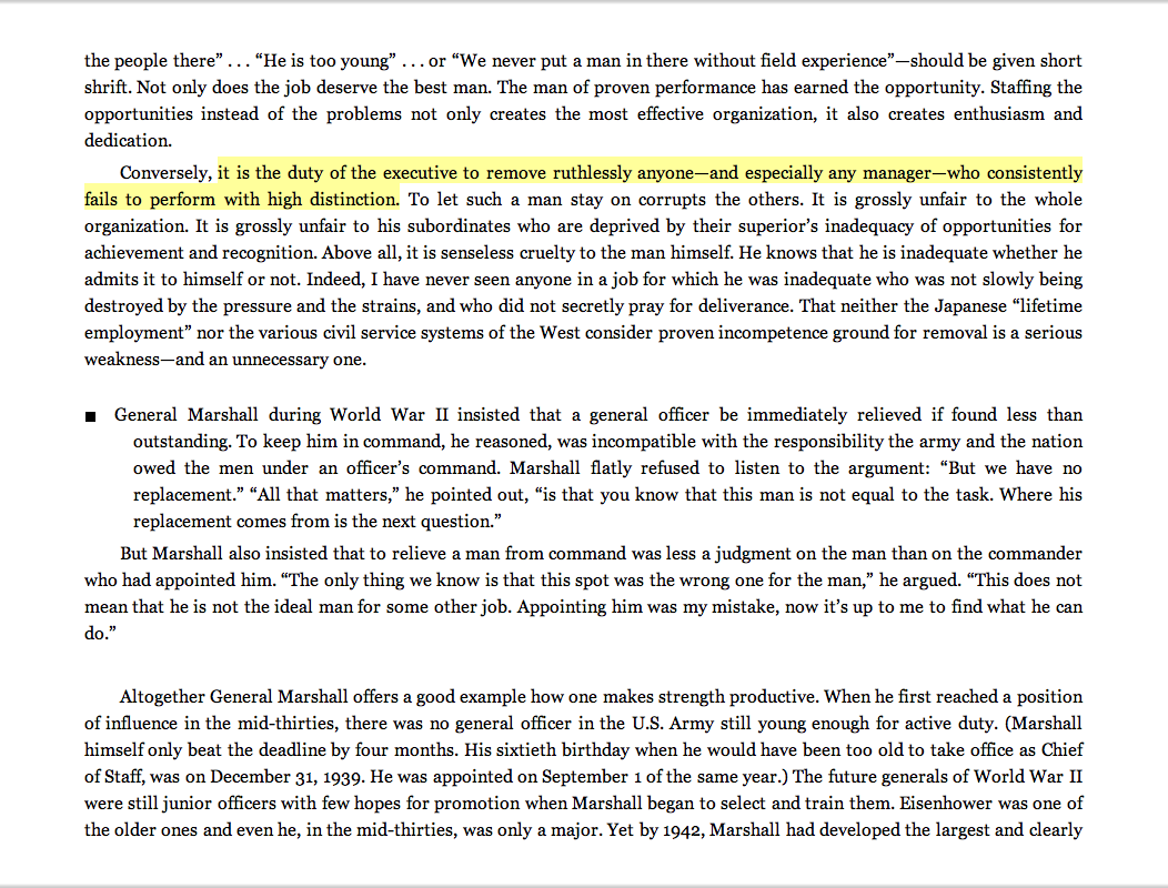“It is the duty of the executive to remove ruthlessly anyone—and especially any manager—who consistently fails to perform with high distinction.”