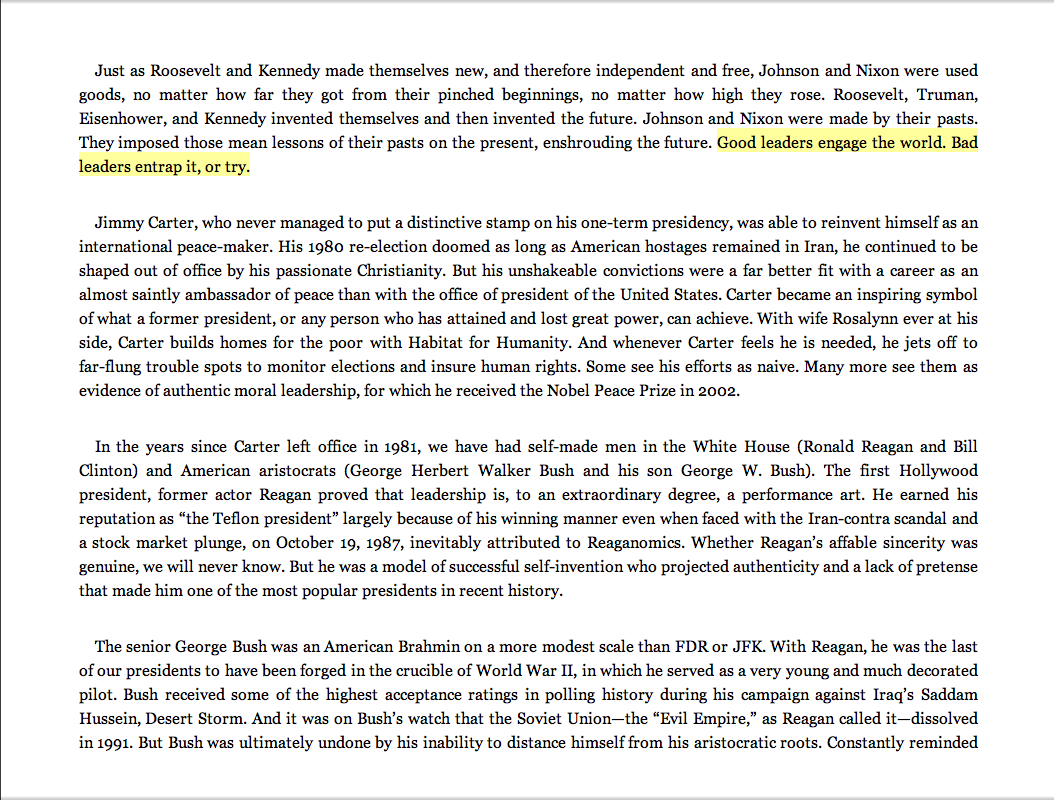 “Good leaders engage the world. Bad leaders entrap it, or try.”