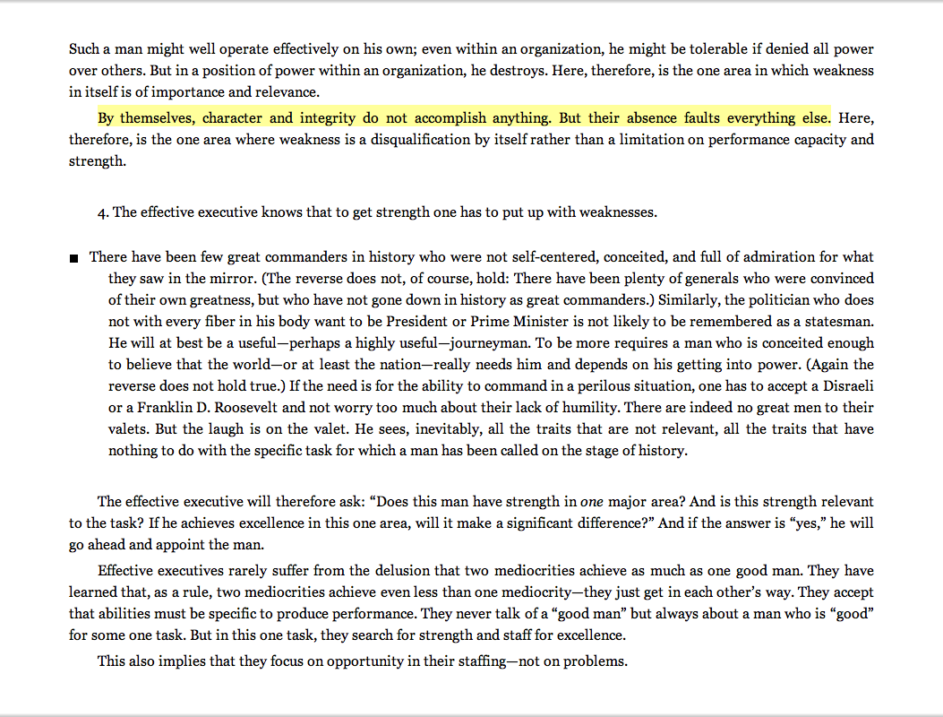 “By themselves, character and integrity do not accomplish anything. But their absence faults everything else.”