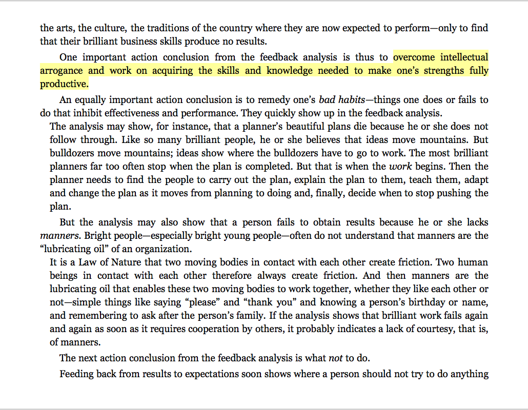 “Overcome intellectual arrogance and work on acquiring the skills and knowledge needed to make one’s strengths fully productive.”