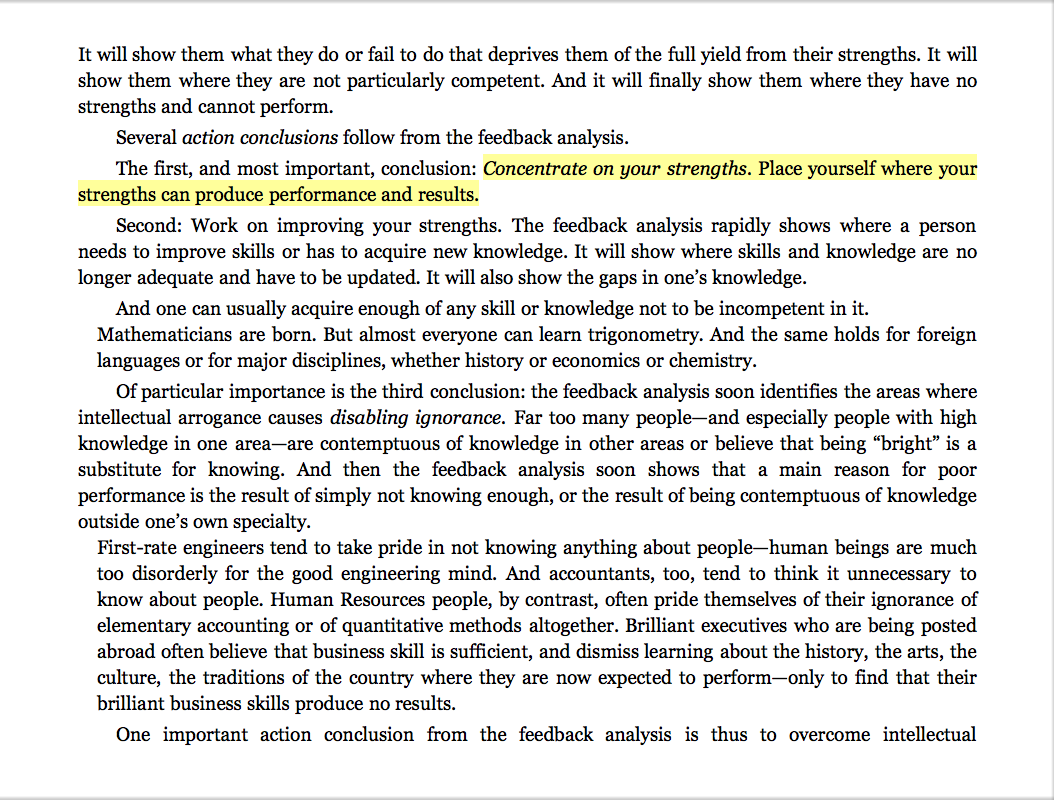 “Concentrate on your strengths. Place yourself where your strengths can produce performance and results.”
