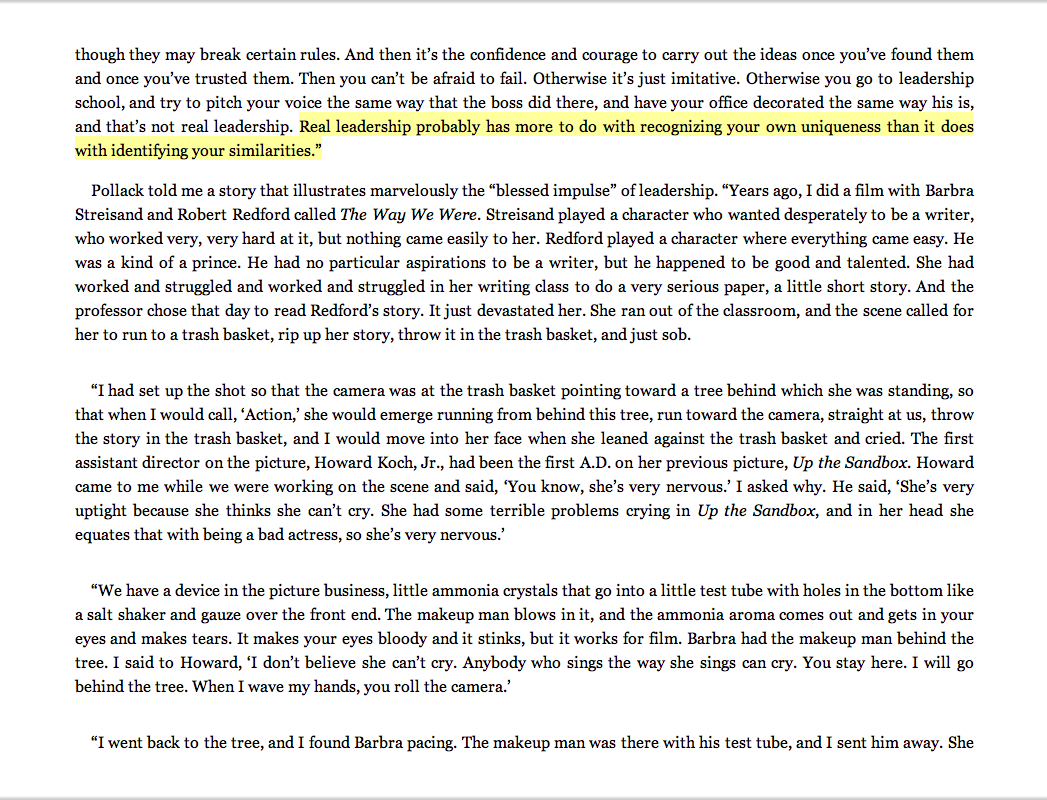 “Real leadership probably has more to do with recognizing your own uniqueness than it does with identifying your similarities.”