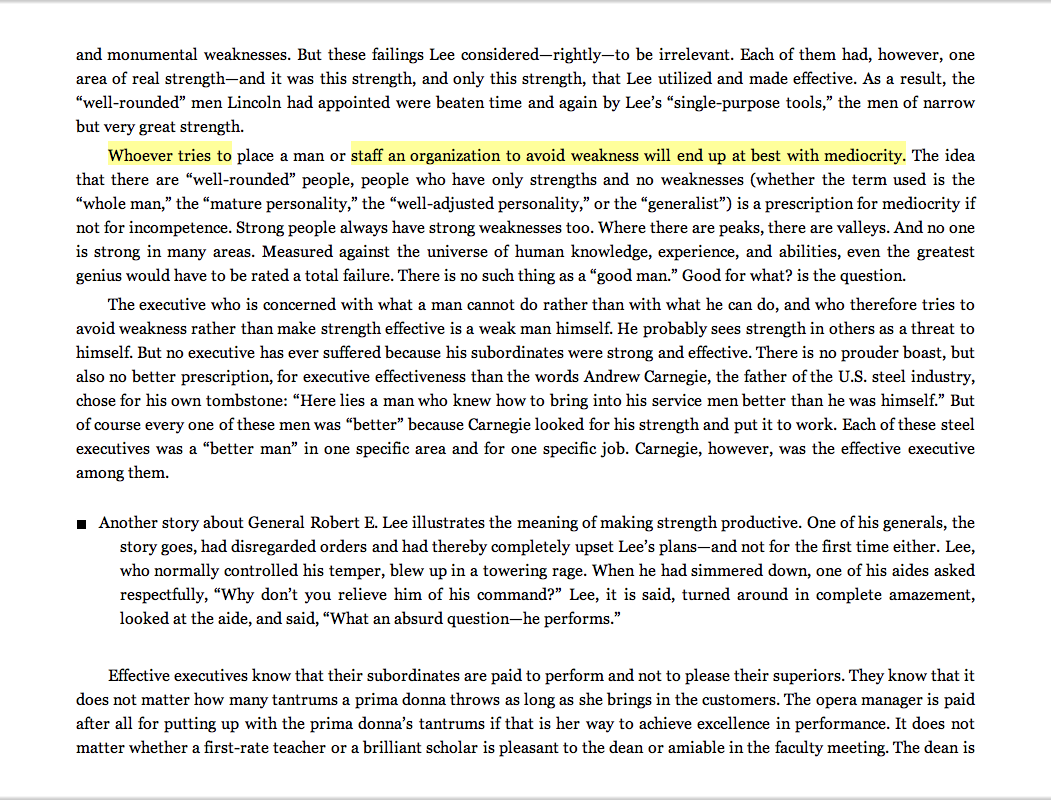 “Whoever tries to . . . staff an organization to avoid weakness will end up at best with mediocrity.”