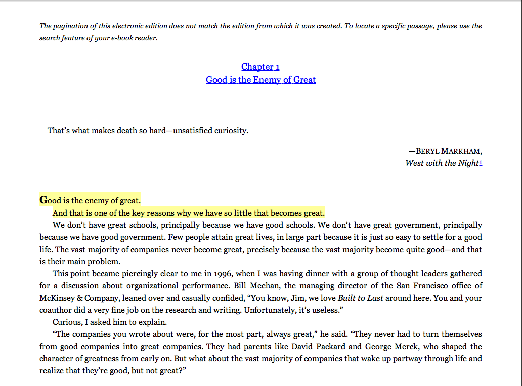 “Good is the enemy of great. And that is one of the key reasons why we have so little that becomes great.”