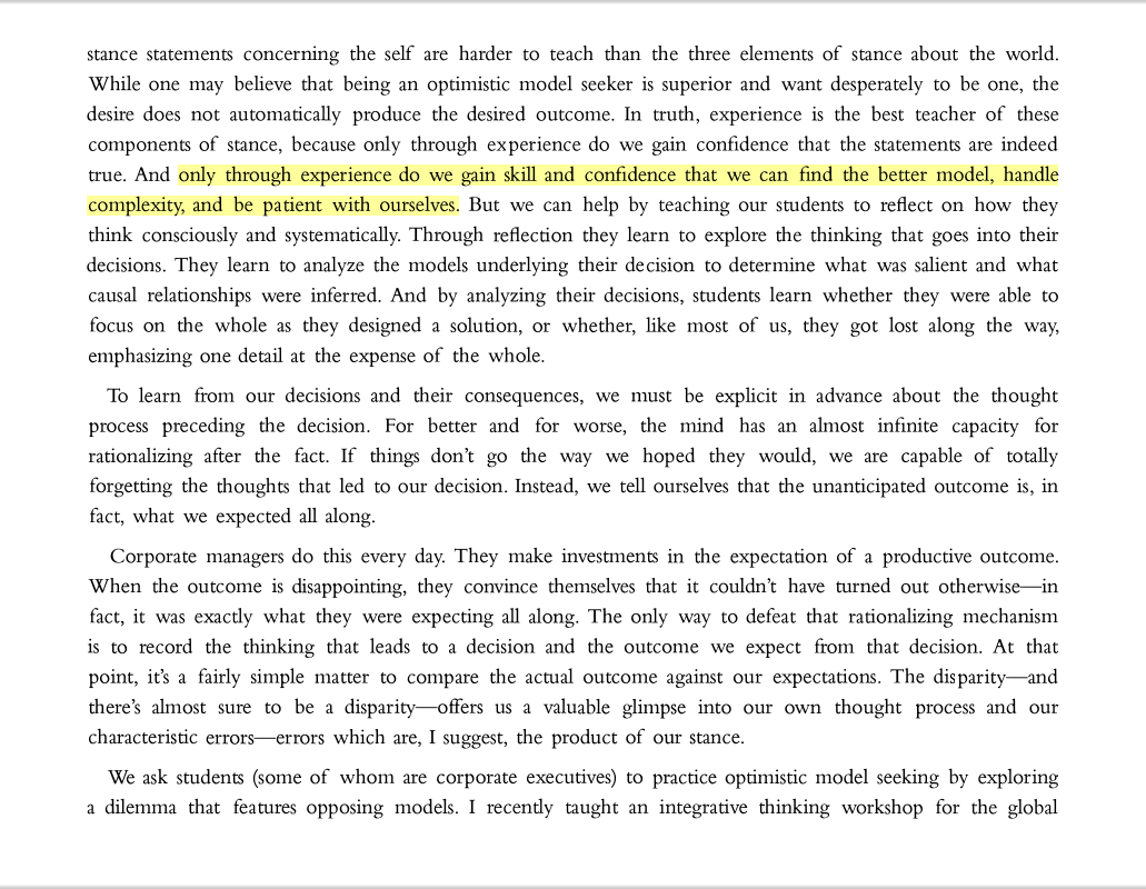 . . . Only through experience do we gain skill and confidence that we can find the better model, handle complexity, and be patient with ourselves.”