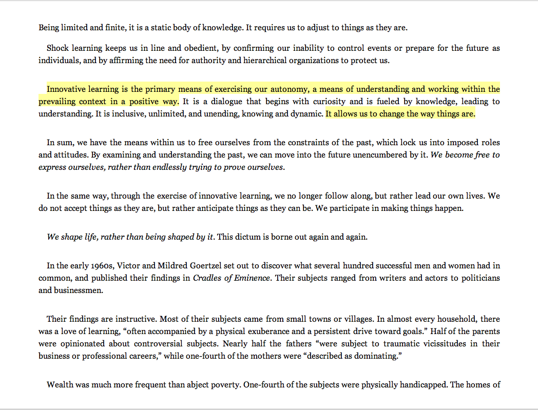 “Innovative learning is the primary means of exercising our autonomy, a means of understanding and working within the prevailing context in a positive way…it allows us to change the way things are.”