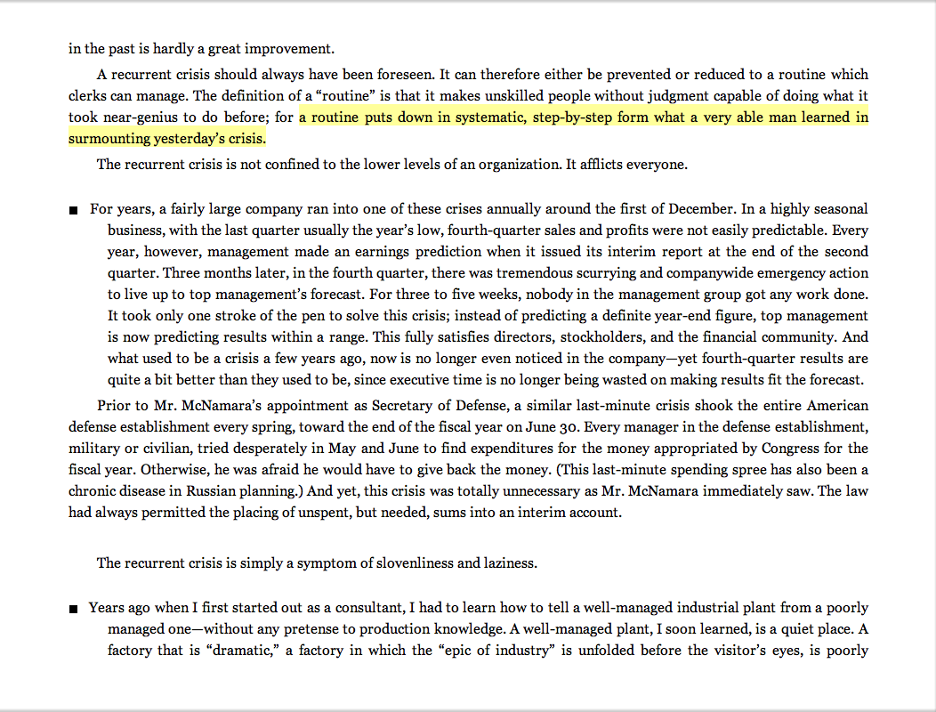 “A routine puts down in systematic, step-by-step form what a very able man learned in surmounting yesterday’s crisis.”