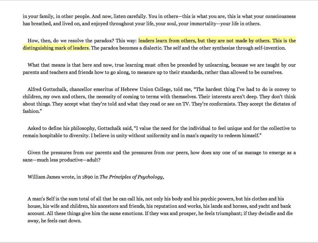 “Leaders learn from others, but they are not made by others. This is the distinguishing mark of leaders.”