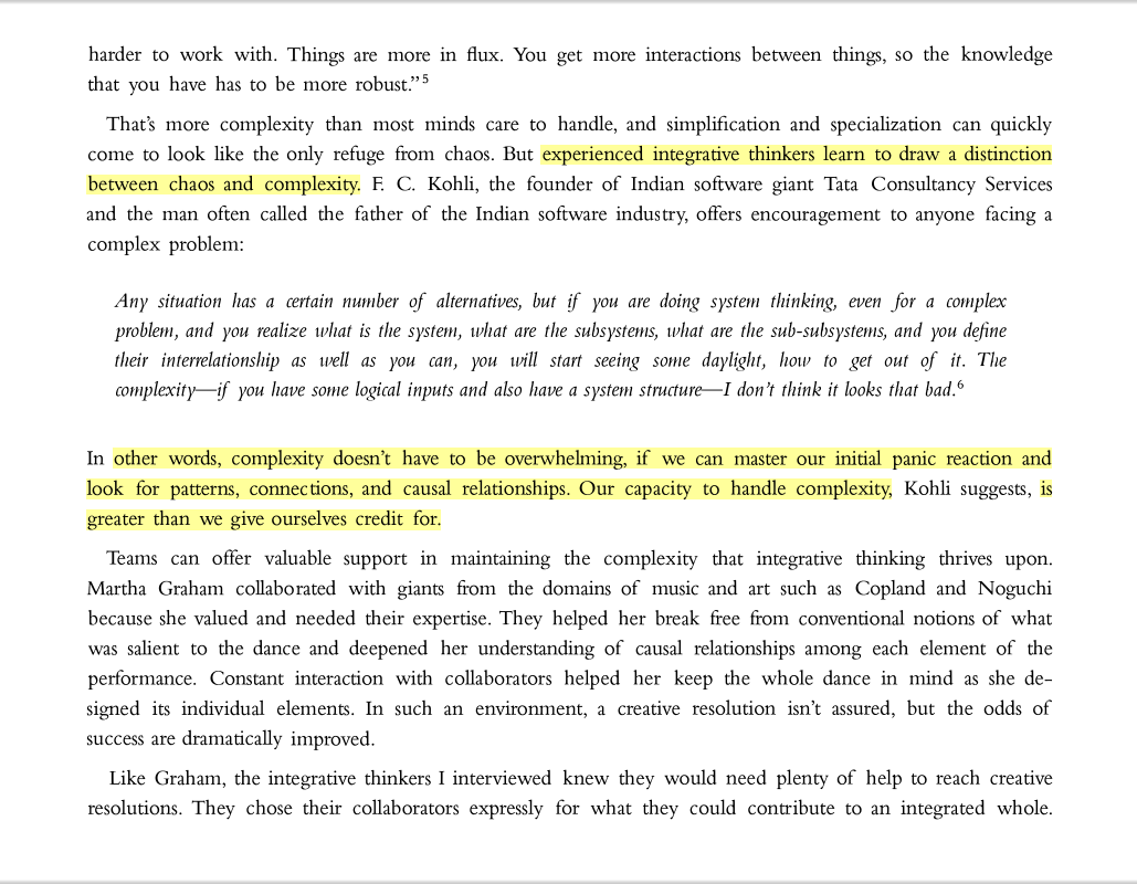 . . . Experienced integrative thinkers learn to draw a distinction between chaos and complexity. . . .