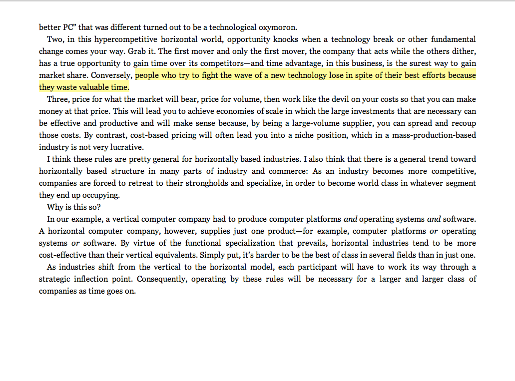 “People who try to fight the wave of a new technology lose in spite of their best efforts because they waste valuable time.”