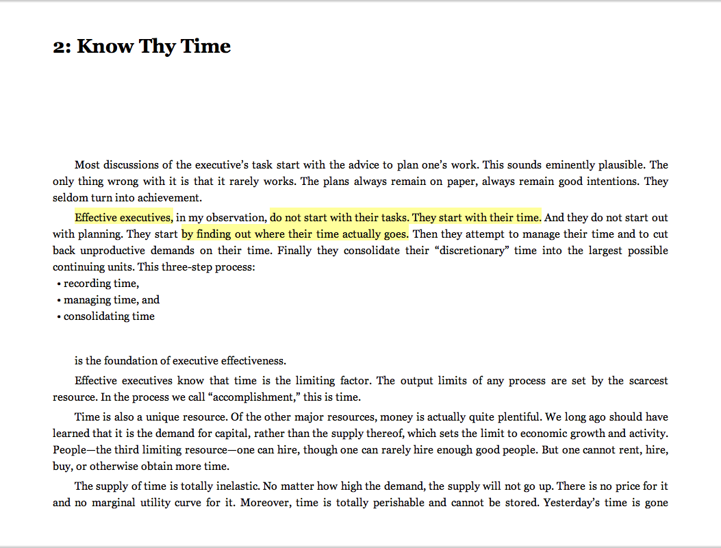 “Effective executives. . . do not start with their tasks. . . they start with their time. . . by finding out where their time actually goes.”