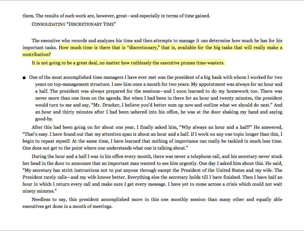 “How much time is there that is ‘discretionary,’ that is, available for the big tasks that will really make a contribution?