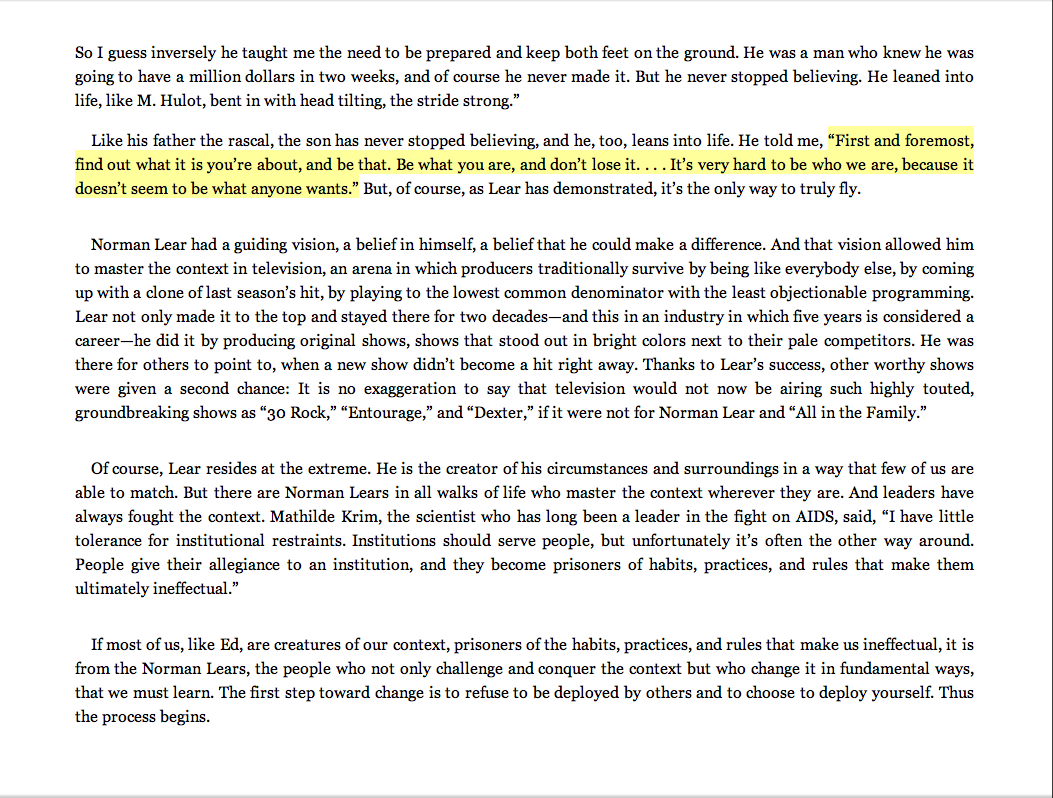 “First and foremost, find out what it is you’re about, and be that. Be what you are, and don’t lose it…. It’s very hard to be who we are, because it doesn’t seem to be what anyone wants.”