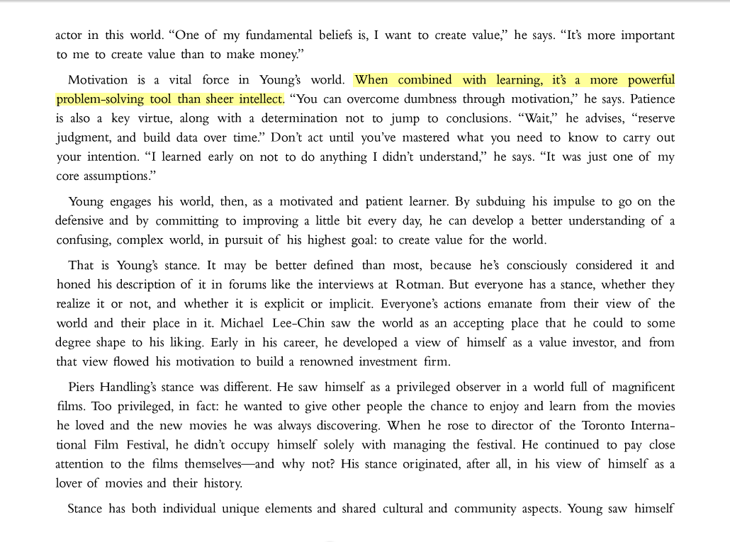 “When combined with learning, [motivation is] a more powerful problem-solving tool than sheer intellect.”
