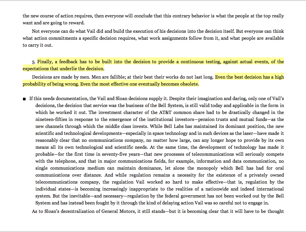 “Feedback has to be built into the decision to provide a continuous testing, against actual events, of the expectations that underlie the decision.