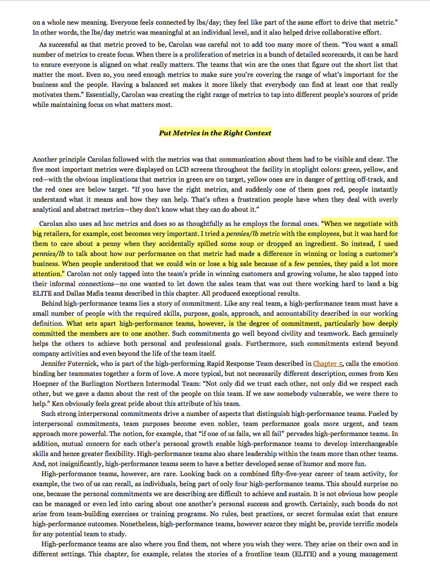 ‘When we negotiate with big retails, costs becomes very important. I tried a pennies/lb metric with the employees, but it was hard for them to care about a penny when they accidentally spilled some soup. So I used pennies/lb to talk about how our performance on that metric had made a difference in winning or losing a customer’s business. When people understood that we could win or lose a big sale because of a few pennies, they paid a lot more attention.’ Ed Carolan General Manager StockPot