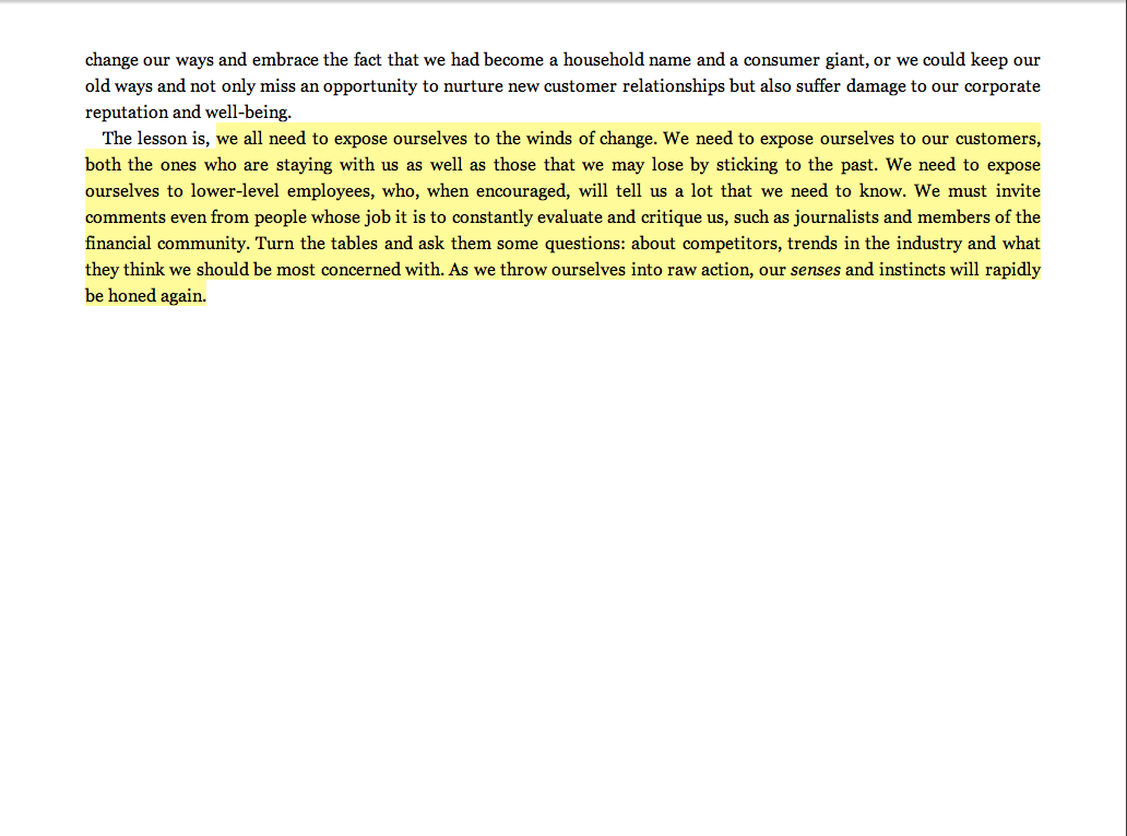 “We all need to expose ourselves to the winds of change. We need to expose ourselves to our customers, both the ones who are staying with us as well as those that we may lose by sticking to the past.