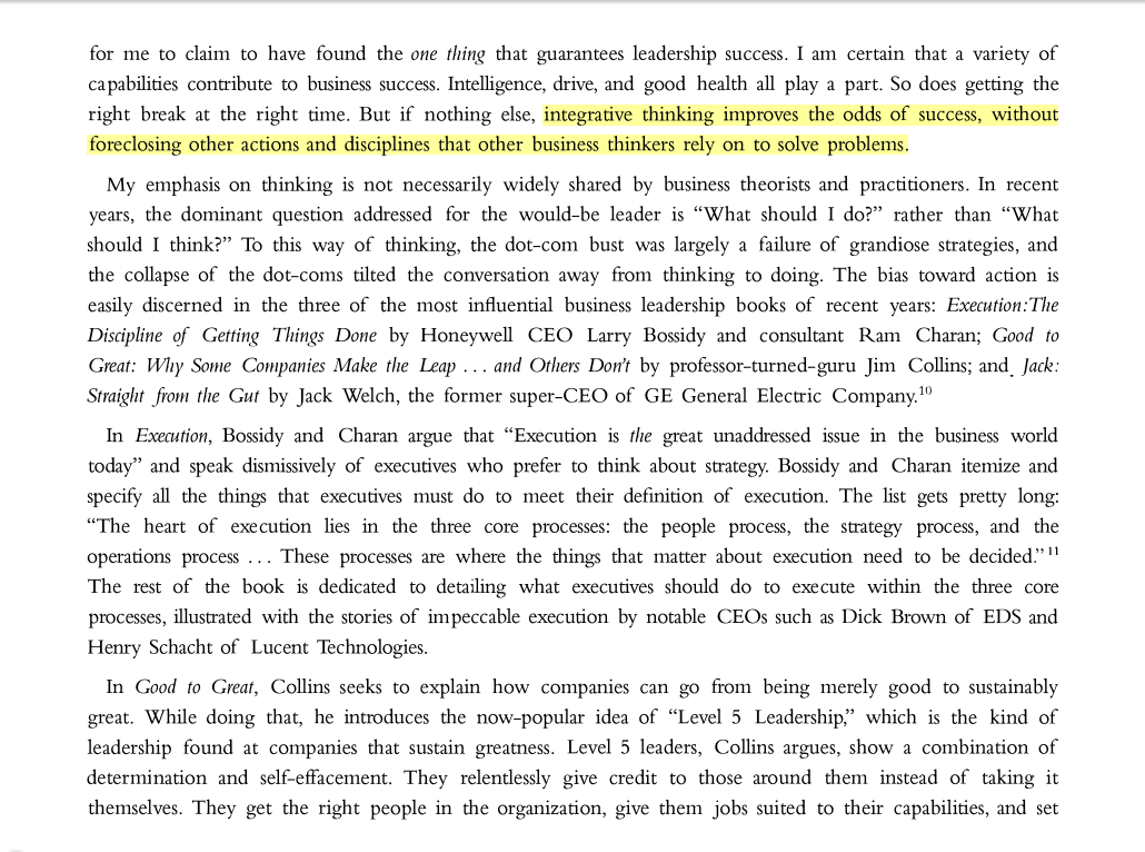 “Integrative thinking improves the odds of success, without foreclosing other actions and disciplines that other business thinkers rely on to solve problems.”