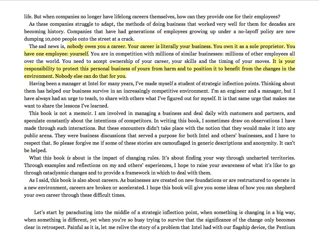Your career is literally your business. You own it as a sole proprietor. You have one employee: yourself.