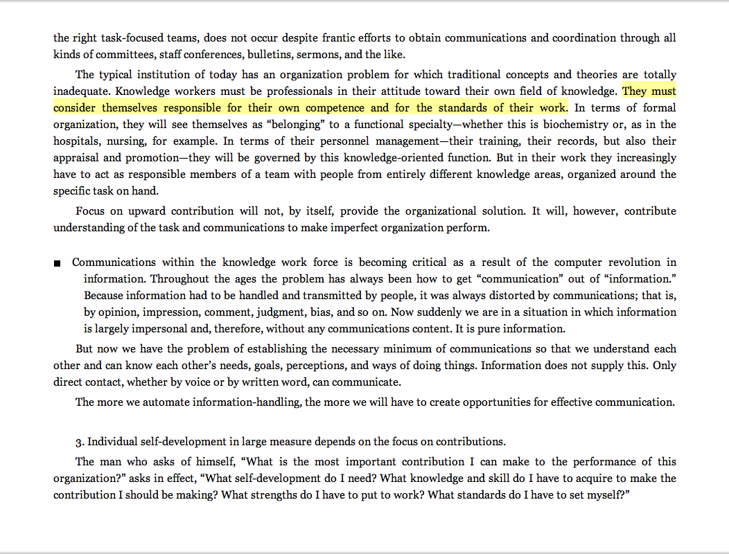 “[Knowledge workers] must consider themselves responsible for their own competence and for the standards of their work.”