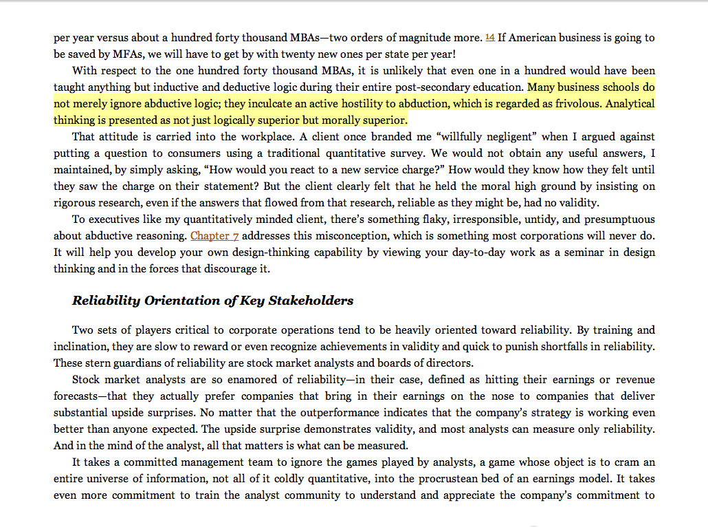 “Many business schools do not merely ignore abductive logic; they inculcate an active hostility to abduction, which is regarded as frivolous. Analytical thinking is presented as not just logically superior but morally superior.”