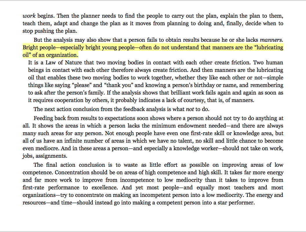 “Bright people—especially bright young people—often do not understand that manners are the ‘lubricating oil’ of an organization.”