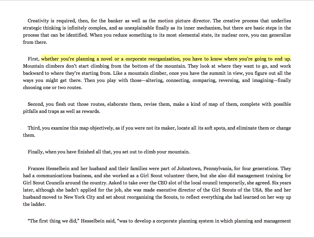 “Whether you’re planning a novel or a corporate reorganization, you have to know where you’re going to end up.”
