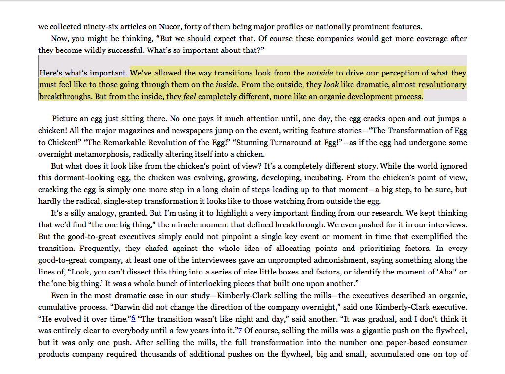 “We’ve allowed the way transitions look from the outside to drive our perception of what they must feel like to those going through them on the inside. From the outside, they look like dramatic, almost revolutionary breakthroughs. But from the inside, they feel completely different, more like an organic development process.”