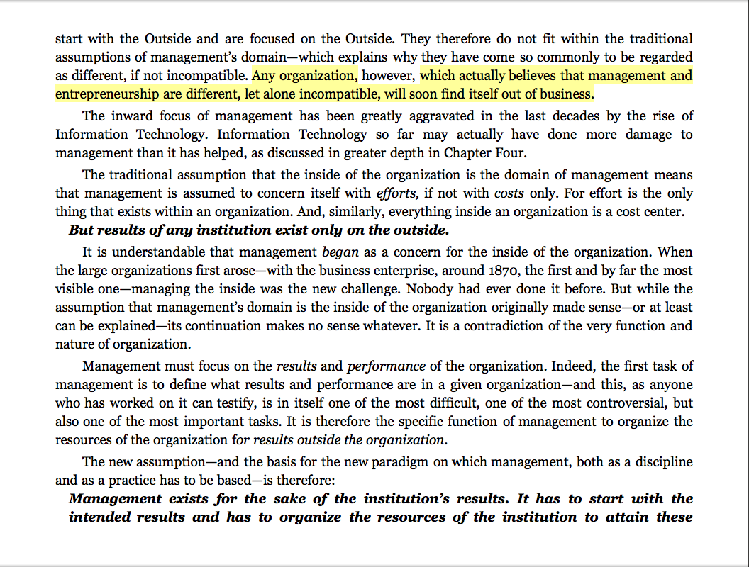 “Any organization . . . which actually believes that management and entrepreneurship are different, let alone incompatible, will soon find itself out of business.”